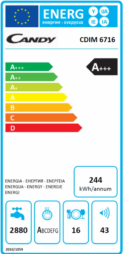 Candy CDIM 6716 dishwasher Fully built-in 16 place settings